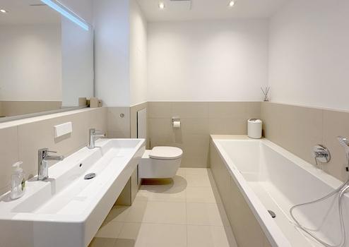 - Badezimmer mit Wanne und Dusche