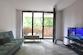 Am Ende des Flurs befindet sich der helle, großzügige Wohn-/Schlafbereich mit Zugang zum Balkon. Eine große, bodentiefe Fensterfront sorgt für viel Tageslicht und verleiht dem Raum einen wohnlichen und gemütlichen Charme.