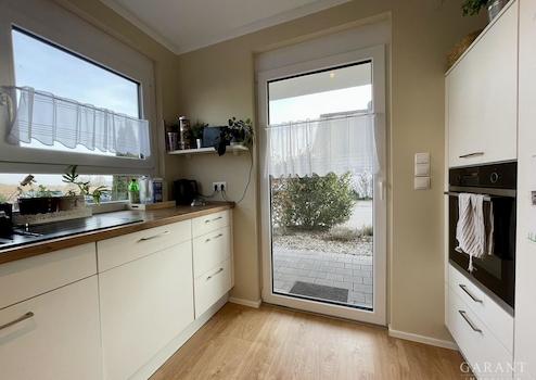 Dieses freistehende Einfamilienhaus mit klassischem Satteldach, errichtet im Jahr 2018 in moderner Holzständerkonstruktion, steht zum Kauf bereit. Das eingeschossige Fertighaus überzeugt durch eine durchdachte Raumaufteilung und zeitgemäßen Wohnkomfort auf einer Ebene. Herzstück ist der großzügige, offen gestaltete Wohn-, Ess- und Küchenbereich mit direktem Zugang zur Terrasse. Direkt an die Küche angeschlossen befindet sich ein praktischer Abstellraum (Speis), der zusätzlichen Stauraum bietet.