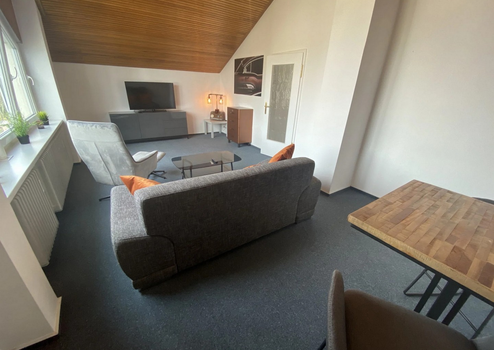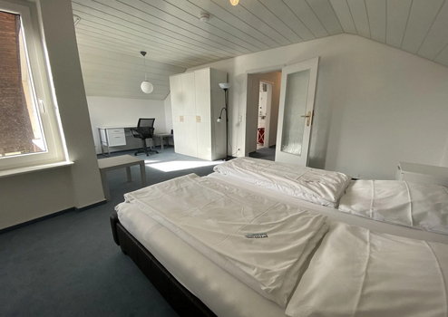 Dieses lichtdurchflutete 2 Zimmer Wohnung mit hohen Räumen liegt in einem ruhigen Wohngebiet in Sindelfingen im 2. Obergeschoss eines gepflegten Mehrfamilienhauses. Das Schlafzimmer ist mit einem hochwertigen 1.80m x 2.00m Doppelbett, einem Schrank und einem Schreibtisch ausgestattet. Das Wohnzimmer ist im Retrostyle ebenfalls komplett mit hochwertigen Möbeln sowie einem Flat TV mit Apple TV ausgestattet. Die moderne und große Einbauküche ist komplett mit allem Zubehör wie Mikrowelle, Herd, Backofen, Töpfen Geschirr und Besteck für jeden Hobbykoch ausgestattet. Eine Waschmaschine mit integriertem Trockner steht im Untergeschoss zur Verfügung.