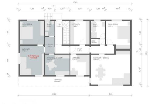Natürlich ist auch der Umbau zu einem großen Einfamilienhaus mit individueller Aufteilung möglich.