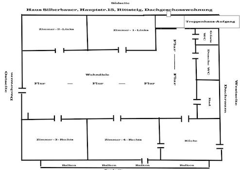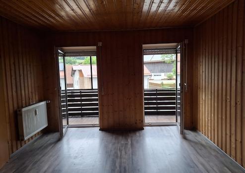 Große, geräumige Zimmer + Einbauküche, eine große helle Diele, ein Bad, eine Dusche mit WC und ein Gäste-WC befinden sich in der mit hellem Fichtenholz verkleidenden Wohnung. Ein tierfreundlicher Balkon und herrlicher Panoramablick zum Berg Hohenbogen sind Vorteile in dieser Wohnung.
