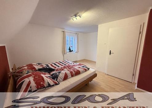 - Großzügiges Schlafzimmer/Studio mit zwei Balkontüren und Zugang auf den Balkon (Das großzügige Zimmer könnte geteilt werden, womit 2 Kinderzimmer entstehen würden
