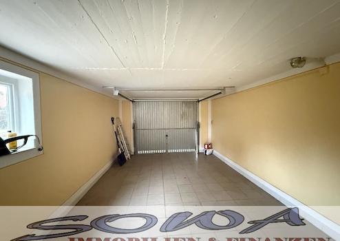 Zu dem Haus gehört eine Garage.