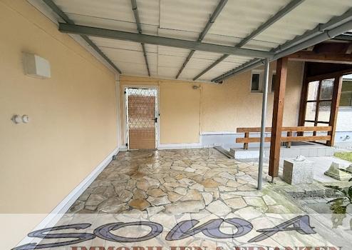 Das Haus verfügt über einen schönen Garten mit einem überdachten Freisitz.