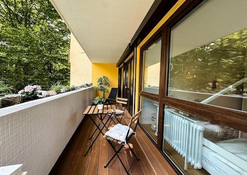 - 15 qm überdachter Süd-Balkon mit Blick in die Bäume