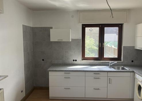 Beide Wohnungen haben jeweils ca. 61,22 m² Wohnfläche und können separat genutzt oder vermietet werden. Im I. OG befindet sich eine überdachte Terrasse. Die Terrasse hat eine Größe von ca. 22,75 m2 und lässt sich daher gemütlich gestalten. Die Wohnung im I. OG wurde gerade neu renoviert. Die gesamte Elektrik wurde komplett erneuert und die Wände neu tapeziert und gestrichen. Der Fliesenspiegel in der Küche wurde erneuert. Die Renovierungsarbeiten sind nun abgeschossen. In der ganzen Wohnung ist Laminat verlegt. In der Küche ist eine Einbauküche vorhanden.