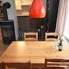 Diese Haushälfte erstreckt sich über zwei Etagen und befindet sich inmitten eines malerischen Landschaftsschutzgebiets. Besonders praktisch ist das separate Arbeitszimmer im Erdgeschoss, welches Ruhe und Konzentration garantiert. Die offene Wohnküche mit großzügigem Essbereich und gemütlichem Kaminofen lädt zu geselligen Kochabenden ein. Das Badezimmer ist mit einer modernen Dusche ausgestattet. Beide Schlafzimmer befinden sich im Obergeschoss - das Hauptschlafzimmer verfügt über ein komfortables Doppelbett, während das Gästezimmer mit zwei gemütlichen Einzelbetten ausgestattet ist.