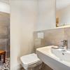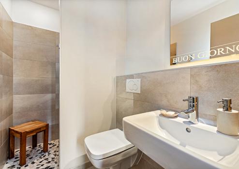 Das gesamte Erdgeschoss ist einheitlich hell gefliest.