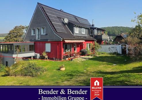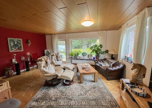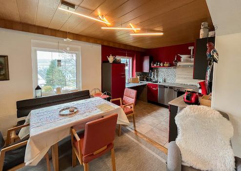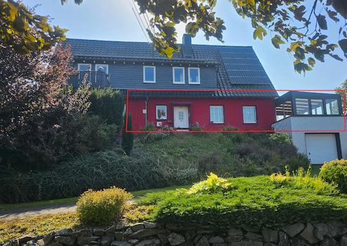 Diese gepflegte Erdgeschosswohnung aus dem Jahr 1960 besticht durch ihre großzügige Wohnfläche von ca. 126 m², welche den Wintergarten und den Anbau aus 2003 umfasst. Des Weiteren beherbergt die Wohnung 3 Schlafzimmer, ein offenes Wohnzimmer mit Küche und Essbereich, von dem Sie Zugang zu einer Terrasse, sowie zu einem Wintergarten haben. Dieser bietet Ihnen einen wunderschönen Blick ins Tal, sowie auf den Sonnenuntergang im Sommer. Die Wiesenfläche, welche von der Terrasse aus zugänglich ist, beträgt ca. 1.800 m² und kann zusätzlich gepachtet oder auch gekauft werden - hier können sich Gartenliebhaber verwirklichen! Zusätzlich besteht die Möglichkeit über das Schlafzimmer ebenfalls eine Terrasse mit Blick in den eigenen Garten anzulegen.