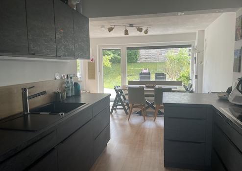 - großer offener Wohnbereich mit Küche / Esszimmer und Wohnzimmer, sowie ein gemütlicher Kaminofen