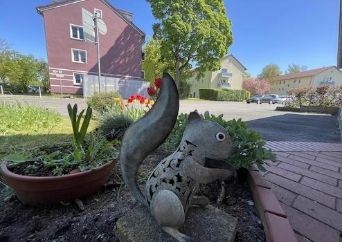 Der Garten bietet viel Ruhe, da er nur von Fußwegen umgeben ist und zur Straße hin von den Garagen abgetrennt wird. Im Garten liefert ein Apfelbaum im Herbst eine ordentliche Ernte. Ergänzt wird er durch Himbeer-, Brombeer-, Johannisbeer, und Erdbeersträucher. Eine Holzlege bietet Stauraum für Holz und Gartengeräte