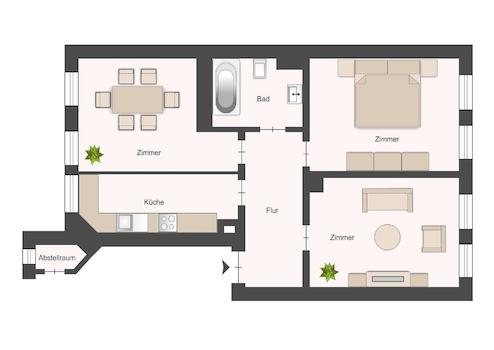 * Drei Zimmer + separate Küche