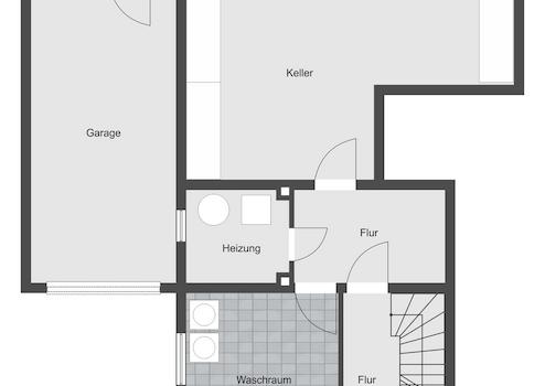 Die Garage links neben dem Gebäude wurde 1971 ergänzt mit einer Innengröße von 6,51 x 2,90 Meter erbaut und ist vom Kellergeschoss aus erreichbar.