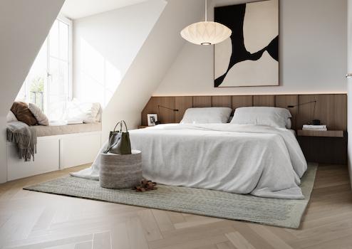 Im Obergeschoss liegen zwei großzügige Kinderzimmer sowie ein Bad und ein Balkon. Das Dachgeschoss ist als Elternrefugium mit Schlafzimmer, Ankleide/Homeoffice und eigenem Bad geplant.