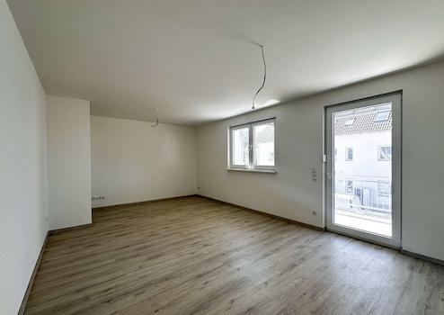 Die Wohnung umfasst ein geräumiges Wohnzimmer, das durch edles Laminat in den Wohnräumen eine warme, einladende Atmosphäre schafft. Das großzügige Wohnzimmer bietet ausreichend Platz für individuelle Gestaltungsmöglichkeiten und ist der perfekte Ort zum Entspannen und Verweilen. Vom Wohnzimmer aus gelangen Sie auf die Terrasse, die zusätzlichen Freiraum für Erholung im Freien bietet.