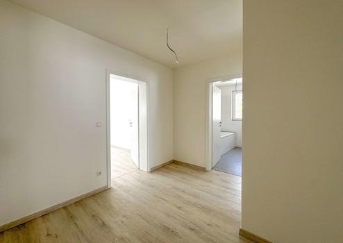 Neben dem Wohnzimmer verfügt die Wohnung über zwei Schlafzimmer, die ebenfalls über das zentrale Flursystem zu erreichen sind. Diese Zimmer bieten sowohl Ruhe als auch Flexibilität für unterschiedliche Nutzungsmöglichkeiten – sei es als Schlafräume oder als Büro.