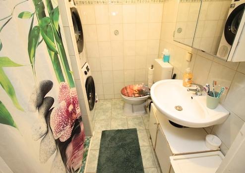 Das funktional ausgestattete Badezimmer sowie ein zusätzliches Gäste-WC präsentieren sich in einem gepflegten Zustand.
