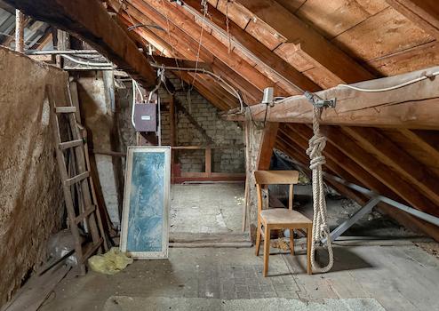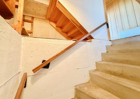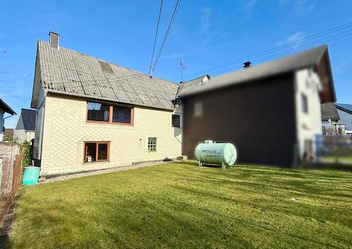 Dieses Angebot umfasst ein Wohnhaus aus ca. 1900 sowie ein ehem. Nebengebäude, das um 1970 zu Wohnraum umgebaut wurde. Beide Gebäude stehen auf einem ca. 382 m² großen Grundstück und könne wieder verbunden werden, wodurch flexible Möglichkeiten entstehen. Der linke, ältere Teil erstreckt sich über 2 Etagen. Im EG befinden sich der Eingangsbereich mit ehemaligen Küchenanschlüssen, ein Wohnzimmer, ein Hauswirtschaftsraum sowie das frühere Bad. Über eine Luke im Eingangsbereich ist ein Erdkellerraum zugänglich. Im OG liegen ein Durchgangszimmer und ein Schlafzimmer, der Dachboden ist über eine Treppe erreichbar. Die Deckenhöhen sind überwiegend niedrig (ca. 1,91–2,06 m, Balken noch niedriger). Eine frühere Verbindung zum zweiten Haustrakt im OG wurde verschlossen, kann jedoch wieder geöffnet werden. Der rechte, jüngere Gebäudeteil verfügt ebenfalls über 2 Etagen. Im EG befinden sich ein Duschbad und die Küche. Das OG bietet ein großes Wohnzimmer, ein Schlafzimmer mit Anschlussmöglichkeit zum Altbau sowie ein Kinderzimmer mit Balkon. Der Dachboden dient als Stauraum. Ein Kellerraum wird als Werkstatt genutzt. Im hinteren Grundstücksbereich befindet sich ein Garten mit Gastank zur Beheizung des neueren Hausteils, der derzeit nur über den Außenbereich erreichbar ist.