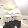 Im Dachgeschoss erwartet Sie eine Wohnfläche von knapp 84 m², die mit einer durchdachten Raumaufteilung überzeugt. Das großzügige Hauptschlafzimmer ist mit einer stilvollen LED-Sternenhimmeldecke ausgestattet und verfügt über einen seitlich ausgerichteten runden Balkon. Zudem bietet der Raum eine praktische Nische für einen maßgefertigten Einbauschrank. Der hochwertige Echtholzparkettboden unterstreicht das angenehme Wohnambiente. Das angrenzende Badezimmer präsentiert sich in eleganter Schwarz-Weiß-Optik mit hochwertigen, pflegeleichten Fliesen. Ausgestattet mit einem großen Spiegel, einem Doppelwaschbecken, WC, einer modernen Duschkabine sowie einer Eckbadewanne lädt es zu entspannenden Auszeiten vom Alltag ein.