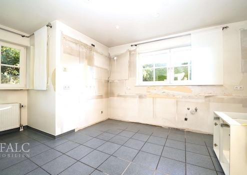 Entlang der Küche eröffnet sich ein großzügiger Raum, der Ihnen viel Gestaltungsfreiheit zur Verwirklichung Ihrer persönlichen Traumküche bietet. Derzeit ist keine Einbauküche vorhanden, sodass Sie Ihre Küche ganz nach Ihren individuellen Vorstellungen planen und direkt umsetzen können. Zudem bietet der Küchenbereich ausreichend Platz für einen gemütlichen Frühstückstisch. Eine sep. Speisekammer ergänzt das Raumangebot ideal und sorgt für komfortable Staumöglichkeiten für Vorräte. Sowohl von der Küche, als auch vom Flurbereich des Erdgeschosses haben Sie die Möglichkeit das Wohn- und Esszimmer, dass in traumhafter Südausrichtung konzipiert wurde, zu betreten.