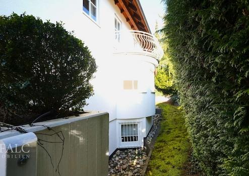 Sämtliche Fenster sind doppelt verglast. Die Balkongeländer sind im französisch-ähnlichen Stil gehalten und verleihen dem Objekt einen eleganten, zeitlosen Charakter. Die Fassade präsentiert sich in einem klassischen Weißton und unterstreicht das repräsentative Erscheinungsbild der Immobilie. Die vollständig gepflasterte Einfahrt empfängt Sie mit einem eindrucksvollen Anblick: Der runde Torbogen, die erkerförmigen Gestaltungselemente sowie die stilvollen Säulen erinnern beim Einfahren an ein Anwesen aus vergangener Zeit und verleihen dem Objekt somit einen ganz besonderen Charme.