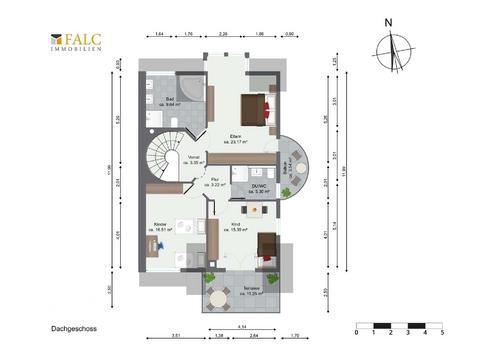 Für zusätzlichen Wohnraum auf dieser Etage überzeugt die Dachspitze mit großzügiger Fläche und angenehmer Raumhöhe. Sie bietet sich als Studio oder weiteres Schlaf- und Hobbyraum an. Durch eine Erweiterung der Wendeltreppe könnte diese Ebene direkt angeschlossen werden, wodurch eine weitere attraktive Wohnraumnutzung gegeben wäre.
