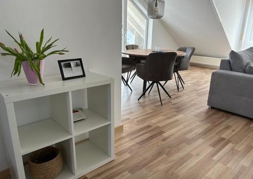 Zur Vermietung steht eine sehr helle und ruhig gelegene 3-Zimmer-Wohnung im 2. Obergeschoss (Dachgeschoss) eines gepflegten Achtparteienhauses am nördlichen Ende des Wohngebietes 'Kappesgärten'. Die Wohnung ist optimal für 2 Personen. Durch die Lage am Ende des Wendehammers ist es entsprechend ruhig und es gibt keinen Durchgangsverkehr.