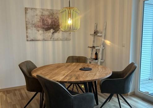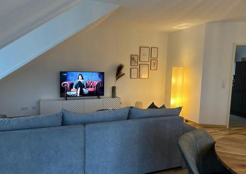 Der großzügige Wohn-/Essbereich mit Südwestausrichtung gleichfalls einem überdachten Balkon bietet einen schönen Blick auf das Kirchberghäuschen. Zusätzlich eröffnet sich ein weiterer Ausblick auf das Auerbacher Schloss.