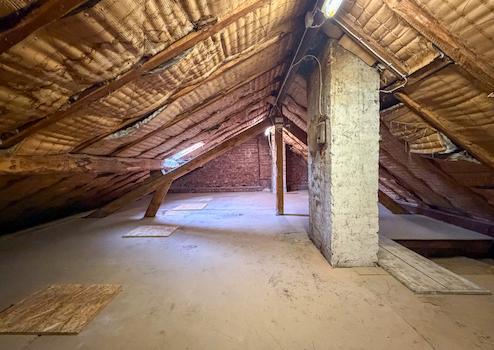 Über eine Ausziehtreppe erreicht man den gedämmten Spitzboden, der als großzügige Abstellfläche genutzt werden kann.