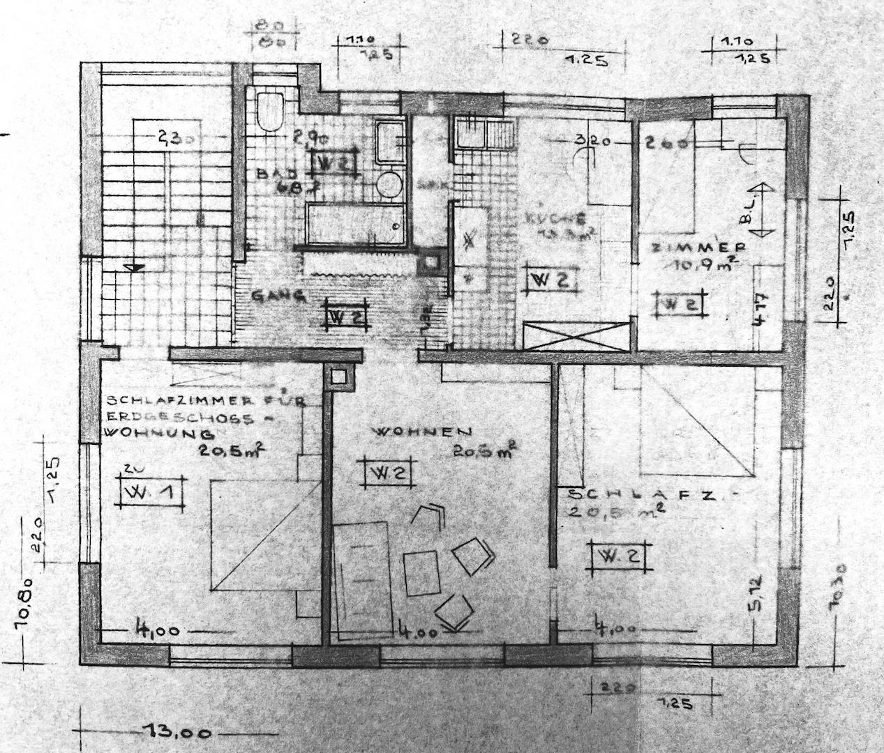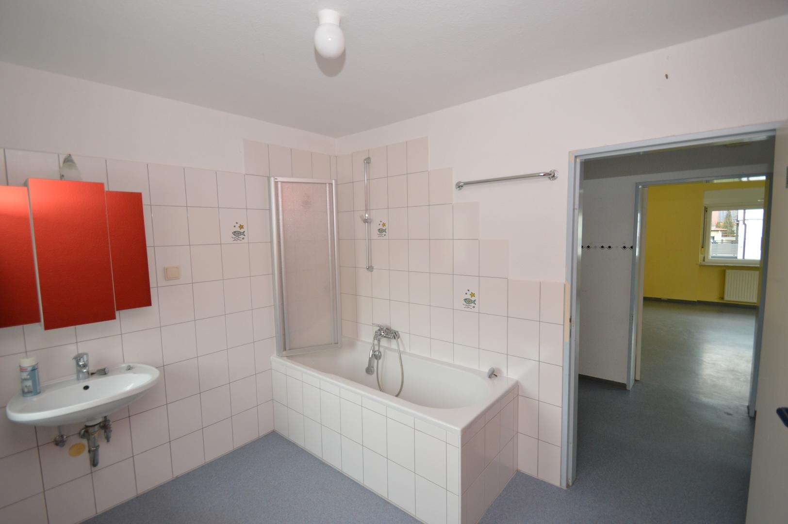 Im Obergeschoss befindet sich eine großzügige 99m²-Wohnung. Es stehen vier Zimmer, eine Küche & ein großes Bad zur Verfügung.