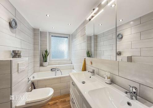 Das Tageslichtbad wurde 2020 modernisiert und präsentiert sich hell, gepflegt und zeitgemäß. Badewanne und Dusche ergänzen sich zu einem komfortablen Badezimmer. Ein separates Gäste-WC sorgt für zusätzlichen Komfort.