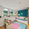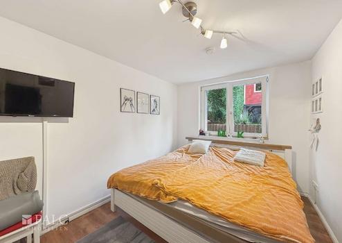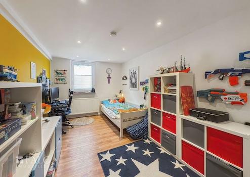 Zwei große Kinderzimmer bieten viel Platz zum Spielen, Lernen und Wachsen. Das Schlafzimmer ist angenehm ruhig gelegen und bietet mit seiner Größe genug Platz für eine erholsame Schlafzone und individuelle Gestaltungsideen. Ein kleiner Abstellraum, aktuell als begehbarer Kleiderschrank genutzt, schafft praktischen Stauraum.