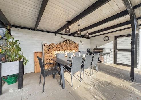 Der Außenbereich bildet einen echten Mehrwert. Die großzügige Gartenfläche in Nord-Ost-Ausrichtung eignet sich hervorragend als Spielfläche für Kinder und bietet zugleich Raum für Gartenliebhaber. Ob Gemüsebeet, Blumen oder eine grüne Rückzugsoase, hier lassen sich viele Ideen verwirklichen. Eine überdachte Terrasse sowie eine zusätzlich offene Terrassenfläche schaffen unterschiedliche Plätze für sonnige Nachmittage, ruhige Pausen oder gesellige Grillabende.