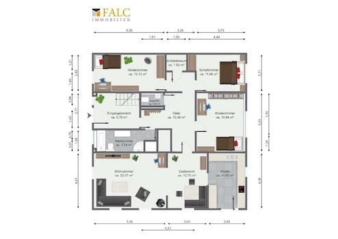 - Aufteilung: fünf Zimmer sowie Küche, Diele, Tageslichtbad und Gäste-WC