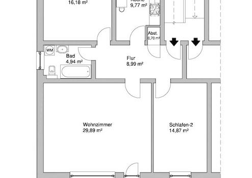 - auf der Ostseite ist kleiner Abstellraum (0,70 m²),