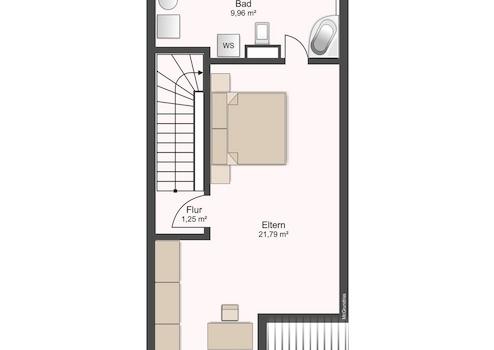 - ausgebautes Dachgeschoss / sehr individuell nutzbar und besonders reizvoll mit Bad en suite und Eckbadewanne