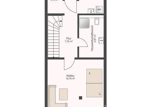 Im Untergeschoss haben Sie neben den Wirtschaftsräumen, Heizung- und Waschkeller ebenfalls einen Hobbyraum - vielleicht für Sie als Option nutzbar mit einer Sauna, wenn man die Handwerker schon mal im Haus hat? Ganz und gar Ihre Wahl!