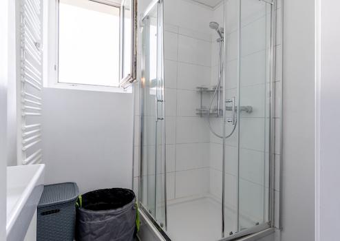 Die Wohnung ist mit hellem Laminatboden ausgestattet. Die Wände sind verputzt und teilweise farbig angestrichen. Die sanitären Anlagen sind mit grauen Boden- und Wandfliesen belegt und weißen Keramiken mit grauen Akzenten abgesetzt. Das Duschbad verfügt über ein Hänge-WC, einen Waschtisch und eine große Dusche. Die Balkone bieten Ihnen schöne Ausblicke auf den Grafenberger Wald und eine Sportanlage, hier können Sie perfekt vom Alltag abschalten. Eine Gaszentralheizung sorgt für Wärme und Warmwasser. Zur Wohnung gehört ein eigener Abstellraum. Die Treppenhausreinigung und Kabel-TV sind in den Nebenkosten enthalten.