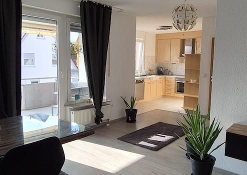 Zur Vermietung steht eine wunderschöne , helle und sehr gut geschnittene Drei Zimmerwohnung im zweiten OG. Das zweite OG erreichen Sie mit einem Fahrstuhl. Diese sehr moderne Wohnung ist mit allem ausgestattet, was das Herz begehrt. Neuwertige und sehr moderne Möbel sowie die komplette Einrichtung sorgen für eine entspannte Wohlfühlatmosphäre. Auch eine wunderschöne komplett eingerichtete Küche inkl. allen Elektrogeräten ist bereits vorhanden. Alle Zimmer sind hell und großzügig geschnitten. Zwei Schlafzimmer bieten Platz für drei Bewohner. Zudem das große Sofa nochmals Platz für zwei Schlafmöglichkeiten. Das Tageslicht Badezimmer wurde mit einer Wanne, einer Dusche sowie einer Waschmaschine und einem Trockner ausgestattet. Das WC ist separat. Auf der überdachten Terrasse können Sie entspannen und die Ruhe genießen. Selbstverständlich gehört zu der Wohnung ein Stellplatz in der zum Haus dazu gehörigen Tiefgarage.