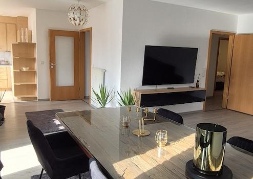 - Wohn-und Essbereich mit Fernseher und Glasfaser Anschluss