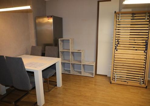 Teilmöbliert: Doppelbett, Esstisch + Stühle, Wohnzimmerschrank und -regal, Wohnzimmertisch, Schlafzimmer-Sideboard usw. Sofern Sie teilweise eigenes Mobiliar nutzen wollen, kann ich Teile der Möbel entfernen.