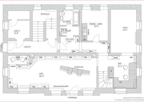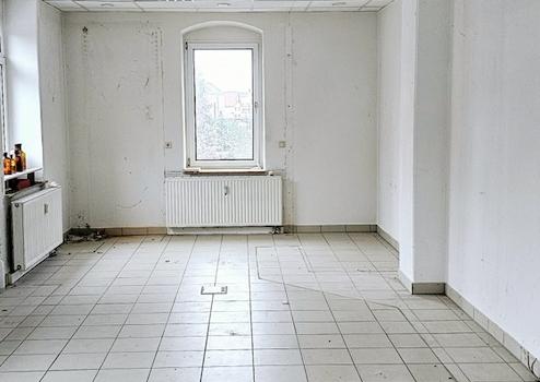 Das Erdgeschoss mit 129 m² Fläche steht leer und könnte zu einer großen Wohnung umgebaut und genutzt werden.