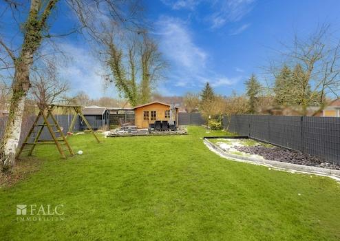 Das ca. 1.134 m² große Grundstück bietet Privatsphäre, Weite und vielfältige Gestaltungsmöglichkeiten. Der gepflegte Garten mit Gartenhütte lädt zu entspannten Stunden im Freien ein und macht dieses Haus zu einem idealen Rückzugsort für die ganze Familie.