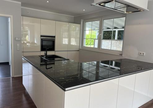 Besonders hervorzuheben ist die hochwertige Einbauküche mit Kochinsel und modernen