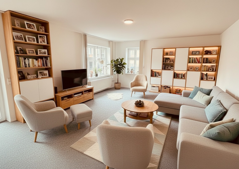 Die Möblierung wurde teilweise mit KI realisiert um eine mögliche Einrichtung besser visualisieren zu können.