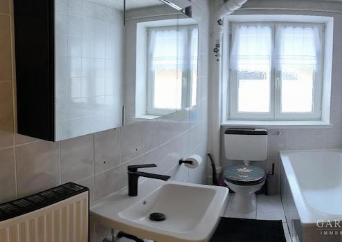 Ein besonderes Highlight ist durch die leichte Hanglage der Balkon mit freier Sicht sowie Kellertür in den Garten. Zusätzlich gehört ein kleiner Dachbodenanteil zur Wohnung, der weiteren Stauraum bietet.