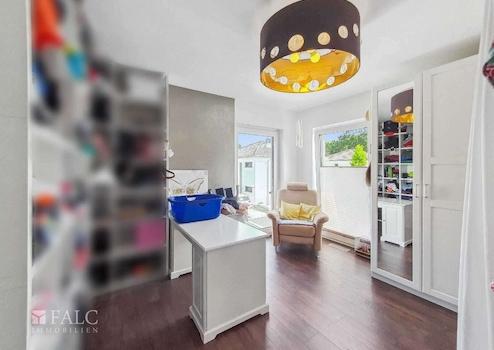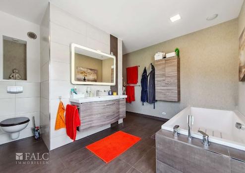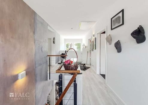 Über eine Echtholztreppe (Amazakoue-Holz) gelangt man ins Obergeschoss der Immobilie. Hier befinden sich drei Zimmer, die ideal als Schlafzimmer, Kinderzimmer oder Arbeitszimmer genutzt werden können. Das Badezimmer ist mit einer Badewanne und einer ebenerdigen Regendusche ausgestattet und ermöglicht somit entspannende Wellness-Momente.