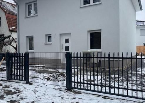 Bei dieser ansprechenden Immobilie handelt es sich um einen Erstbezug in ein zweistöckiges KfW55-Effizienz-Einfamilienhaus. Das Haus besticht durch eine gehobene Innenausstattung und kann ab dem 01.12.2025 bezogen werden. Neben vier attraktiven Zimmern zählen ein gefließtes Badezimmer sowie ein separates, gefließtes Gäste-WC zu der Immobilie. Die Einbauküche, die bereits vorhanden ist, spart Ihnen Zeit und bares Geld gegenüber einem Neukauf. Das 2025 erbaute Gebäude ist mit einer Luft-Wärmepumpe und einer Photovoltaikanlage ausgestattet. Das Haus verfügt über eine Fußbodenheizung. Der Spitzboden ist ausgebaut und kann als Lagerfläche genutzt werden. Auch ein Garten mit ca. 300 m² steht Ihnen zur eigenen Nutzung zur Verfügung. Die monatliche Miete für die Immobilie mit Grundstück beträgt 2.650,00 Euro Kaltmiete, die Nebenkosten werden sich auf ca. 250,00 € belaufen.