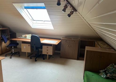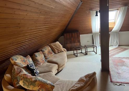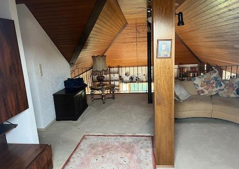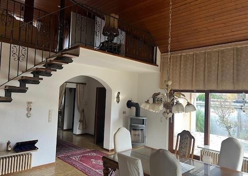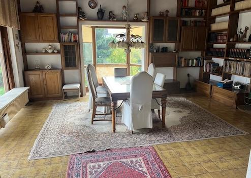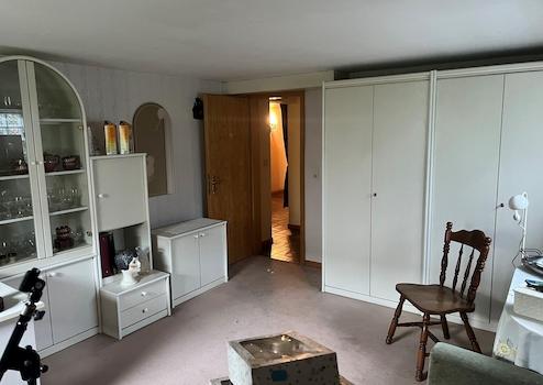 Im Hochkeller befinden sich ein Gäste- oder Kinderzimmer mit eigenem Duschbad, ein großer Hobbyraum, mehrere Lagerräume sowie die Heizungsanlage. Ein Carport mit direktem Zugang zum Untergeschoss und eine Gartenhütte ergänzen dieses großzügige Gebäude.